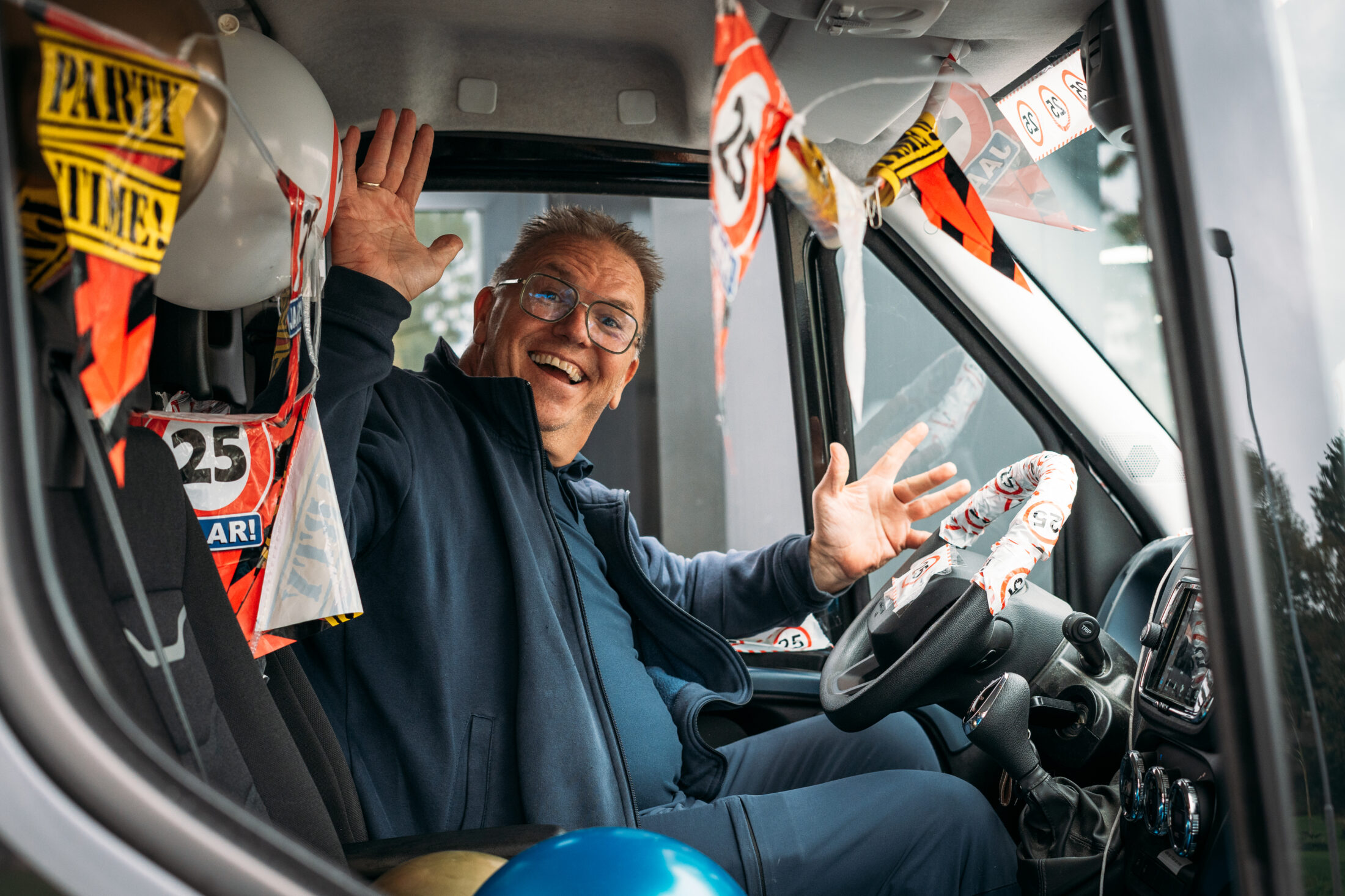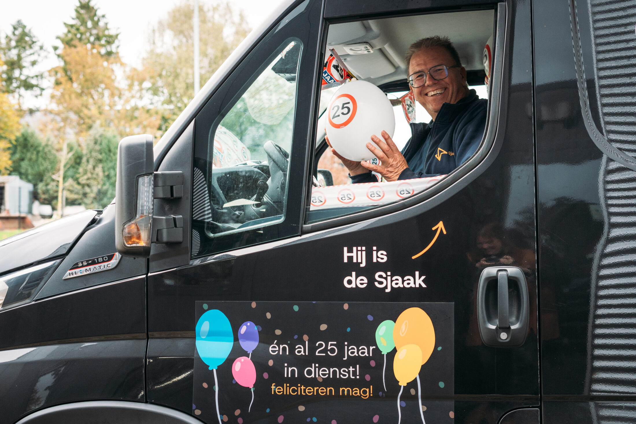 En je weet het… als Sjaak in de buurt is, gebeurt er altijd wat. Een grap, een praatje of gewoon zo’n typisch Sjaak-moment. Zoals die keer dat hij zichzelf per ongeluk opsloot in de bus. De deur viel dicht, telefoon voorin, pikkedonker. “Dan maar roepen… HALLO?… Gelukkig vond hij op de tast de juiste knop.