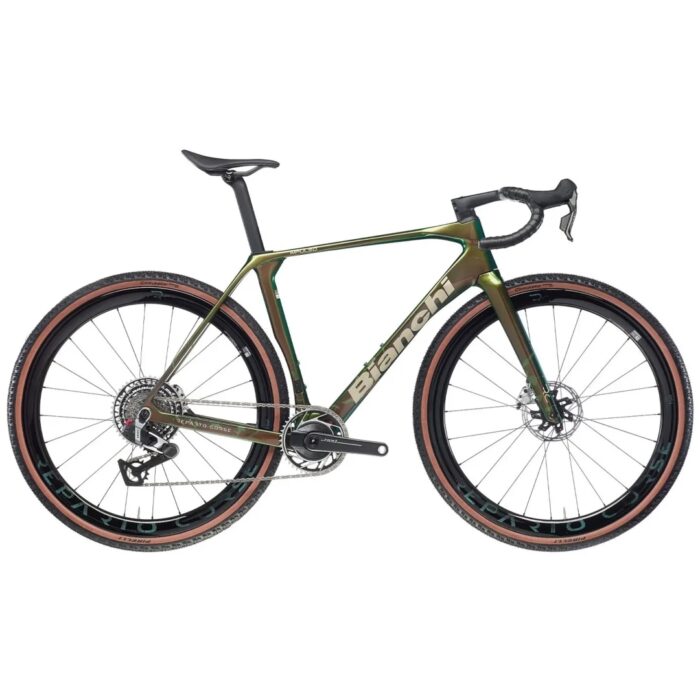 De Bianchi Impulso RC is een high-performance gravelbike die racefiets-prestaties combineert met gravelfunctionaliteit. Het lichtgewicht carbon frame en de Impulso carbon vork zorgen voor stijfheid én comfort, terwijl het elektronische Shimano GRX Di2 12-speed schakelsysteem en hydraulische schijfremmen moeiteloos schakelen en remmen, ongeacht het terrein. De Bianchi Reparto Corse RC43 carbon wielen met Pirelli Cinturato Gravel-banden bieden maximale grip en snelheid op asfalt én onverhard. Met een geïntegreerd carbon stuur, aero zadelpen en full-carbon RC139-zadel rijd je zowel efficiënt als comfortabel, zelfs op lange ritten. Klaar voor avontuur, strak op de weg en stabiel op gravel – de Impulso RC is de ultieme keuze voor prestatiegerichte fietsers die niets aan het toeval overlaten.
